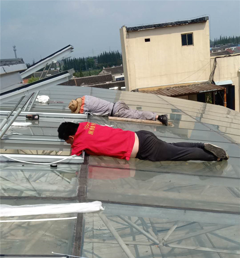 屋面滑、高是現(xiàn)場安裝的主要困難,鑫友售后人員憑借豐富的經(jīng)驗(yàn),嫻熟的技能,保證了安裝進(jìn)度。
