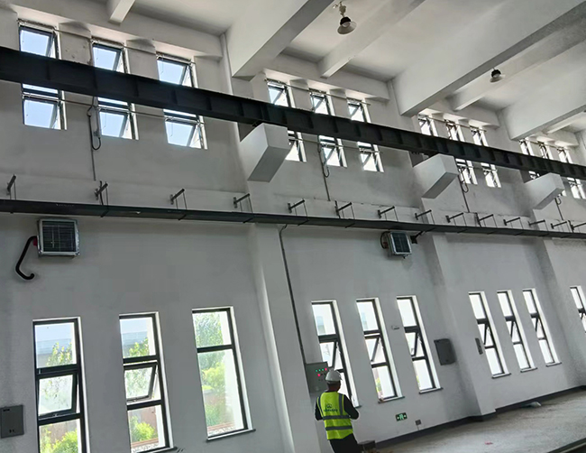 我公司承接蕪湖熙寧建設(shè)工程有限公司天津?qū)氎孳壍儡噹?、綜合樓、宿舍樓的排煙窗工程已經(jīng)于昨日完工并經(jīng)甲方初步調(diào)試通過,選用的是曲臂式手動和電動兩種開啟裝置。電動開窗機(jī)是一種新型自動開/關(guān)窗戶的設(shè)備,可實(shí)現(xiàn)窗戶開啟/關(guān)閉的自動化控制。