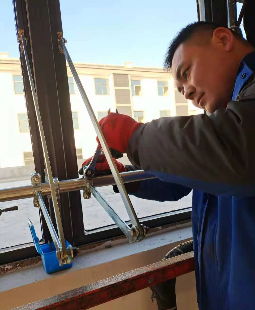 此次電動(dòng)排煙窗工程采用曲臂聯(lián)動(dòng)電動(dòng)開窗器,由螺桿式電動(dòng)開窗器驅(qū)動(dòng)。