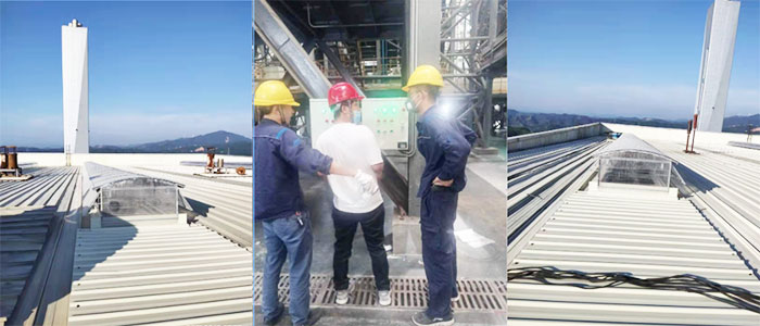 8月19日把產(chǎn)品發(fā)貨贛州,安裝人員 隨后趕至現(xiàn)場開安全教育會議,查看現(xiàn)場時發(fā)現(xiàn)廠房內(nèi)設(shè)備進(jìn)不去,鑫友們商議好布線方案經(jīng)電廠副總同意后開始施工布線。高度太高,從九層穿線至三層,安裝人員克服困難,倍道而進(jìn),爭取早日交付。
