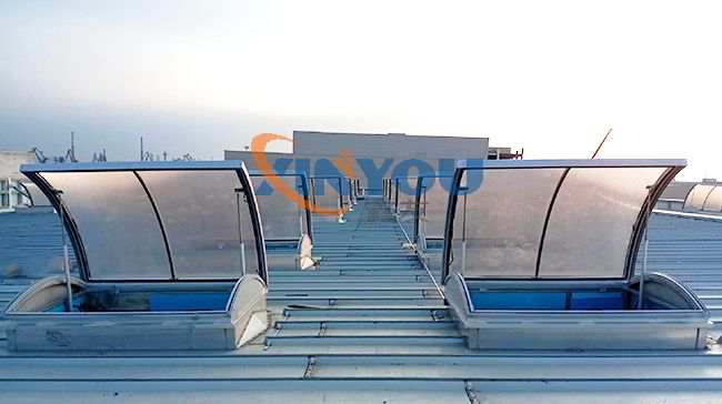 圓拱形的設(shè)計(jì),外觀優(yōu)美、通風(fēng)排煙兼顧自然采光,可實(shí)現(xiàn)消防聯(lián)動(dòng)控制,開(kāi)啟角度一般為30度到45度***開(kāi)啟角度為90°。 夏季有利于排水,冬季不積雪。采用單開(kāi)或?qū)﹂_(kāi)形式。天窗啟閉按群組控制,每組天窗數(shù)根據(jù)天窗數(shù)量及控制距離決定。