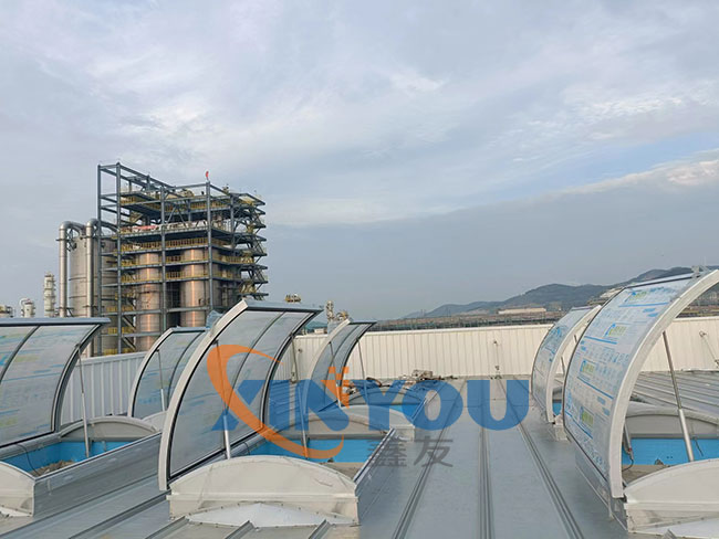 圓拱形的設(shè)計(jì),外觀優(yōu)美、通風(fēng)排煙兼顧自然采光,開(kāi)啟角度一般為30度到45度***開(kāi)啟角度為90°。