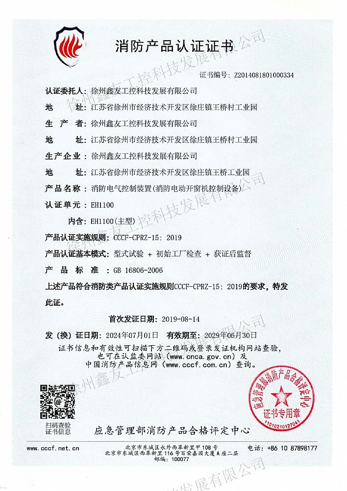 消防產(chǎn)品認(rèn)證證書EH1100