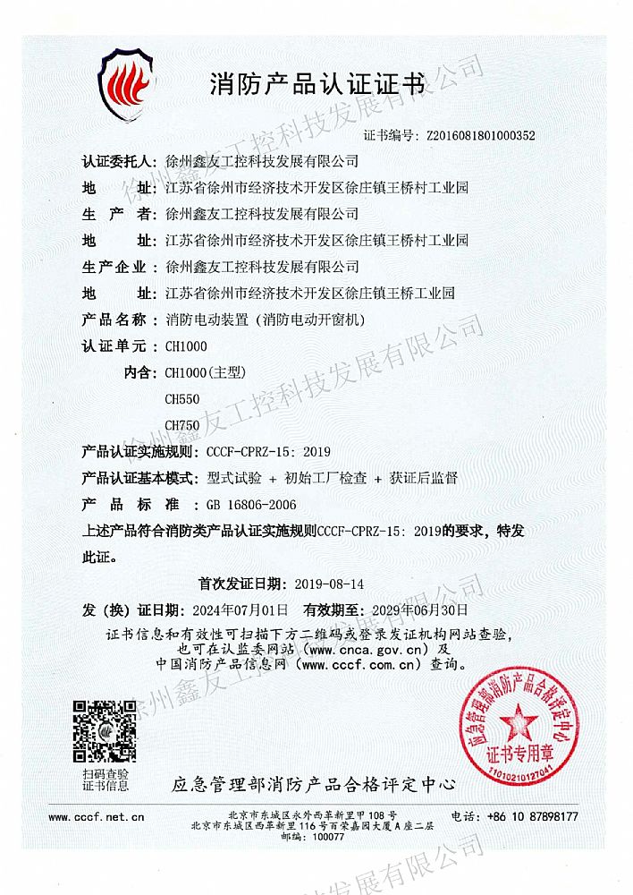 消防產(chǎn)品認(rèn)證CH300(2019...