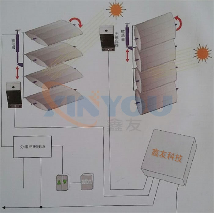 光感追蹤百葉是在傳統(tǒng)手動百葉窗的基礎(chǔ)上,運用了單片機(jī)和傳感器技術(shù),通過光照強度的變化來自動調(diào)節(jié)百葉窗開啟角度,以達(dá)到全天侯的***佳透光效果。