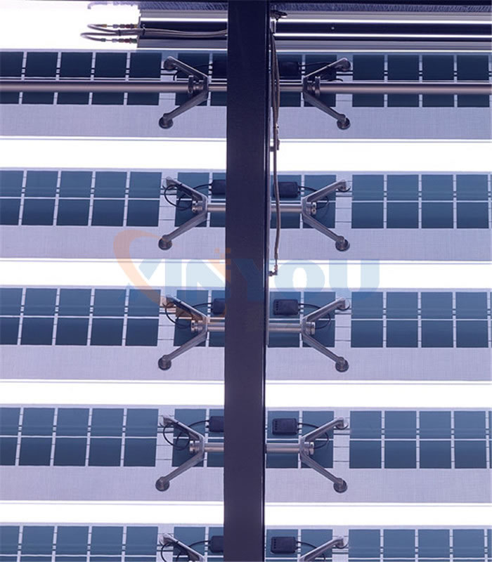 光伏百葉,能夠有效的將太陽(yáng)能轉(zhuǎn)化為電能、動(dòng)能,同時(shí)百葉滿足日常的采光、遮陽(yáng)這樣功能。光伏百葉環(huán)境控制單元可以預(yù)置對(duì)風(fēng)、雨、光、溫、煙等感應(yīng)參數(shù),使之通過(guò)外置感應(yīng)器,對(duì)超限值作出及時(shí)回應(yīng)進(jìn)而控制百葉動(dòng)作,完全實(shí)現(xiàn)了綠色環(huán)保節(jié)能的建筑理念。