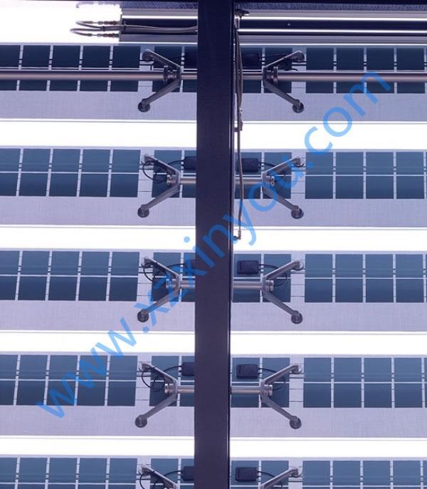光伏百葉,能夠有效的將太陽(yáng)能轉(zhuǎn)化為電能、動(dòng)能,同時(shí)百葉滿足日常的采光、遮陽(yáng)這樣功能。光伏百葉環(huán)境控制單元可以預(yù)置對(duì)風(fēng)、雨、光、溫、煙等感應(yīng)參數(shù),使之通過(guò)外置感應(yīng)器,對(duì)超限值作出及時(shí)回應(yīng)進(jìn)而控制百葉動(dòng)作,完全實(shí)現(xiàn)了綠色環(huán)保節(jié)能的建筑理念。